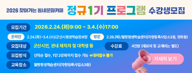- (¸ðÁý) ±º»êÇлý¹®È°ü ¼ö°»ý ¸ðÁý ¾È³»2026-02-10